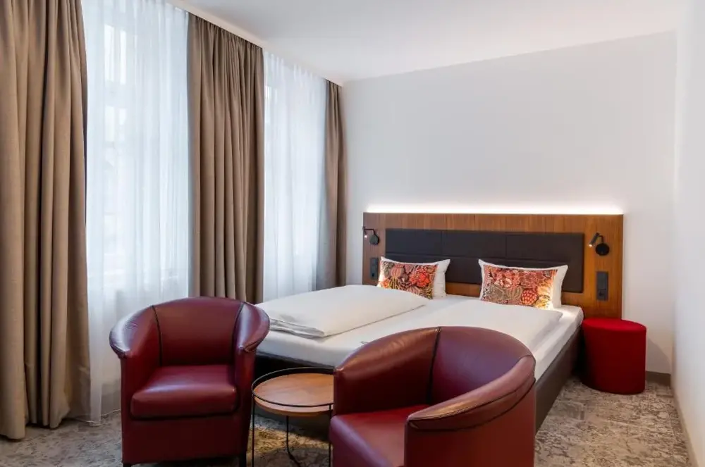 Das Hotel Alma Am Anger ist ein 4-Sterne-Haus in zentraler Lage am Anger in Erfurt, umgeben von Geschäften und touristischen Attraktionen. Die stilvollen Zimmer bieten Platz für erholsame Aufenthalte mit modernem Ausstattungsstandard. Gäste genießen ein reichhaltiges Frühstück sowie kulinarische Angebote im Restaurant Weinstube mit Biergarten. Zu den nah gelegenen Sehenswürdigkeiten zählen die Krämerbrücke, die Zitadelle Petersberg und weitere historische Stätten. Der Aufenthalt ermöglicht es Besuchern, die Altstadt und ihre charmanten Gassen zu erkunden. Mit einer Vielzahl an Dienstleistungen wie Zimmerservice, Familienzimmern und einer 24-Stunden-Rezeption wird der Komfort gesteigert.